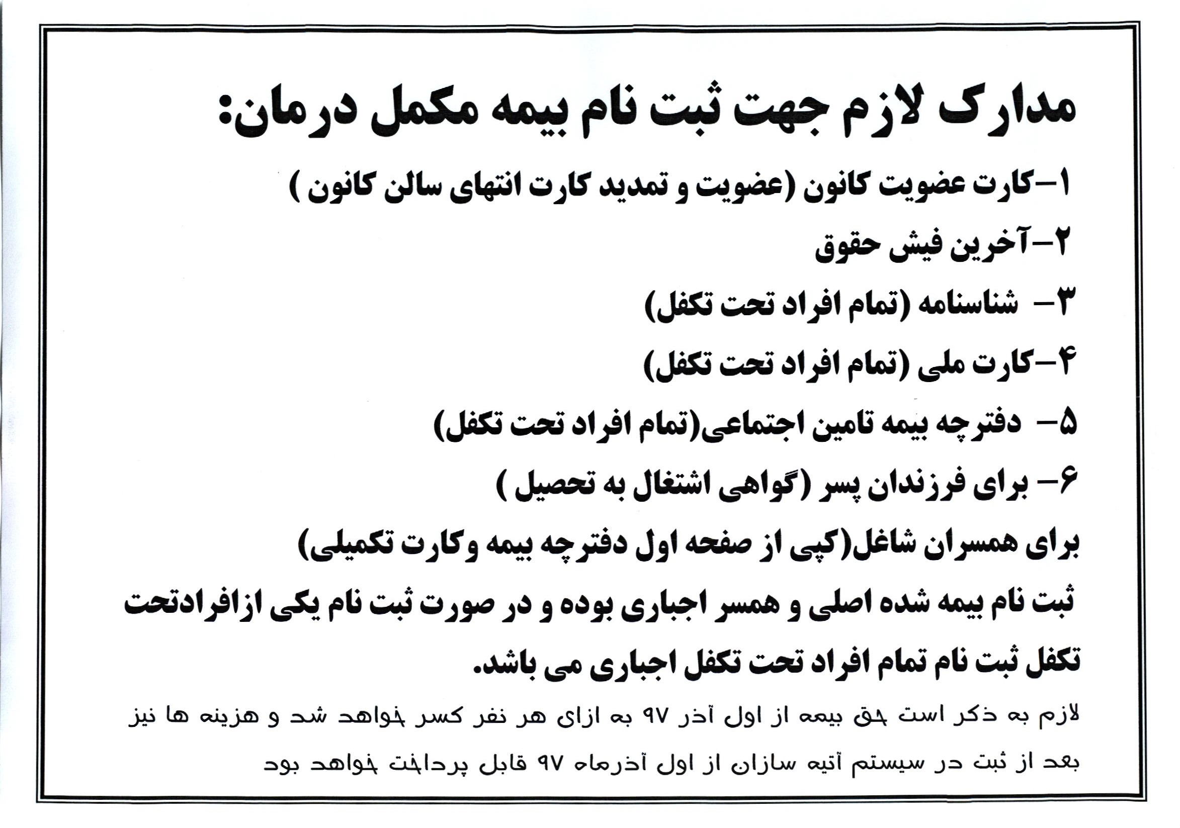 لطفا جهت انجام امورات مربوط به کانون (بیمه درمان مکمل ،بیمه عمر گروهی ،عضویت و انصراف) به سایت جدید کانون به شرح زیر مراجعه فرمائید.